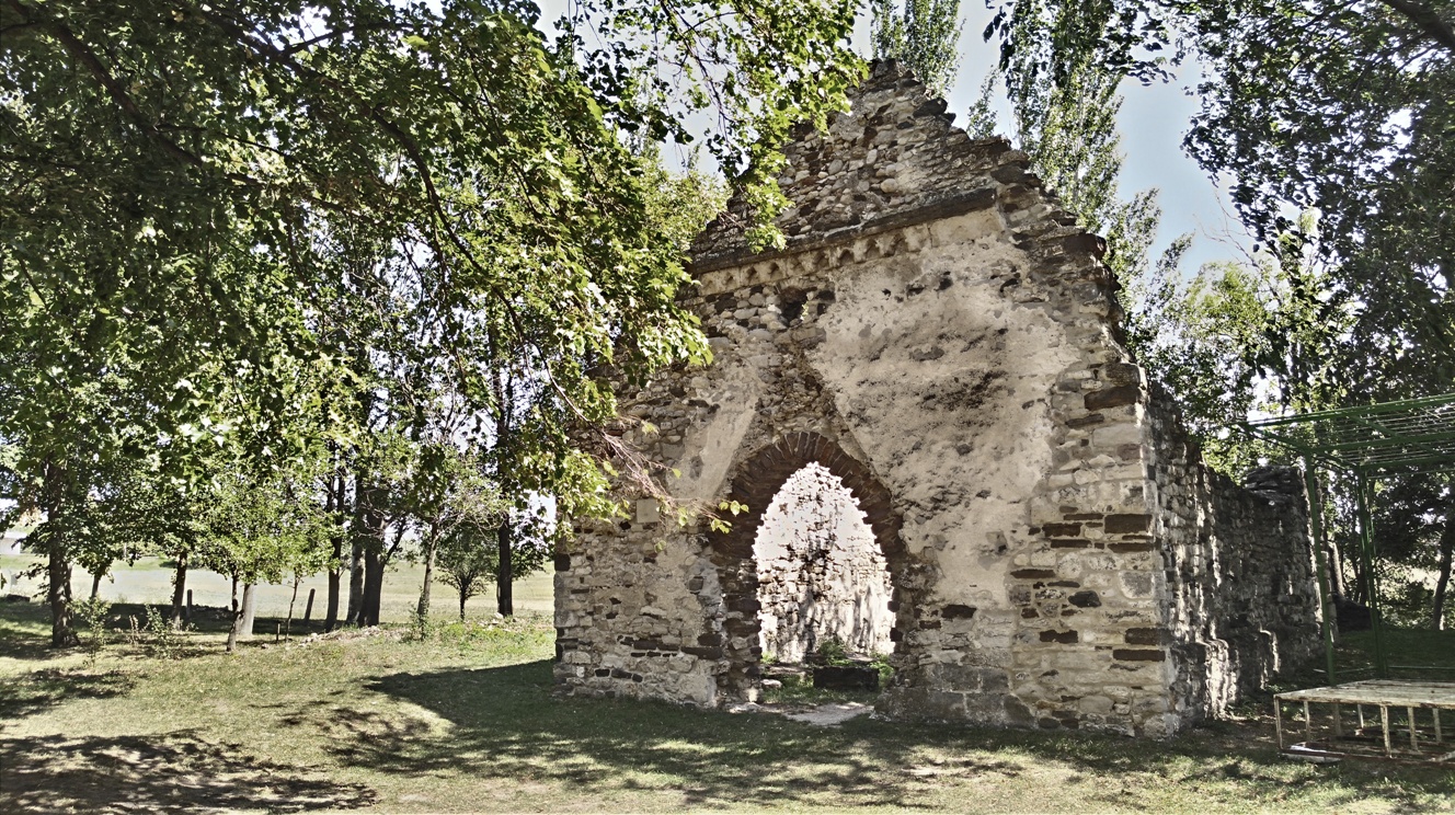 | Fák közötti ligetben tűnik fel a kövesdi templomrom. Aszófő lakott területétől kb 250 méterre, nyugodt csendes helyen megpihenhetünk. |
