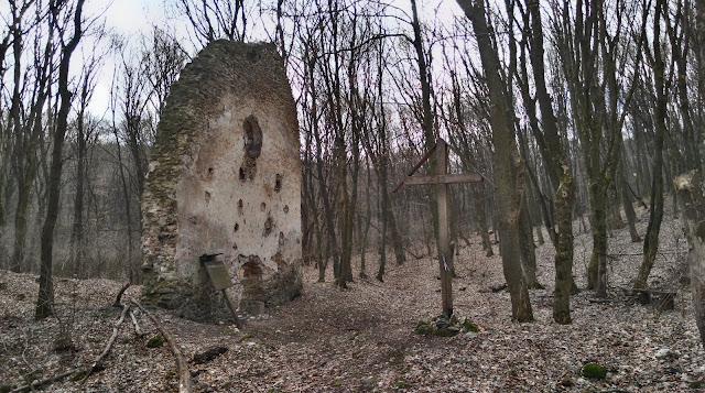 Jó ideje tervben volt ez a középkori romokat érintő körtúra, a mai kiváló tavaszias időt megbecsülve sort is kerítettem rá. Nagyvázsonyban a Jókai Mór utca végénél található temetőnél parkoltam le, innen indultam és ide is értem vissza. Kis séta után, a temetőn át vagy azt megkerülve az erdőben (én erre mentem, ez a kékkel jelzet túraút) előbukkannak utunk első